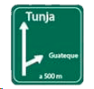 Esta señal indica que a 500 metros se encuentra la salida hacia un municipio cercano, y de igual manera, informa cuál será el destino al continuar derecho.