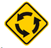 Glorieta: esta señal advierte sobre la proximidad de una glorieta en la vía, lo cuál significa que aproximadamente 3 o 4 carriles que transitan en sentidos diferentes, van a confluir en ese espacio, razón por la que es necesario reducir la velocidad y respetar la vía de los otros vehículos.
