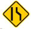 Reducción asimétrica de la calzada: en el caso del ejemplo indica que la calzada derecha será reducida, por tanto, todos los vehículos que transitan por esta deberán pasarse al carril izquierdo. También puede encontrarse con asimetría del lado izquierdo.