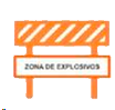 Valla usada con el fin de alertar a conductores y peatones sobre el uso de material explosivo en una zona. También se usa para delimitar el área de trabajo y prevenir accidentes.